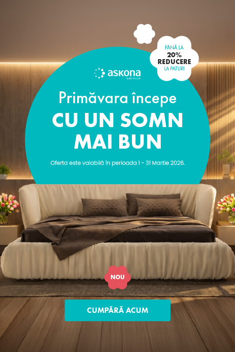 De aceea, misiunea Askona este să îți ofere soluții complete pentru un somn sănătos, adaptate nevoilor tale și stilului tău de viață. Fie că alegi o saltea ortopedică, un pat modern sau accesorii pentru confort, te bucuri de produse testate, fiabile și concepute pentru bunăstare. La Askona, calitatea somnului tău este întotdeauna pe primul loc.