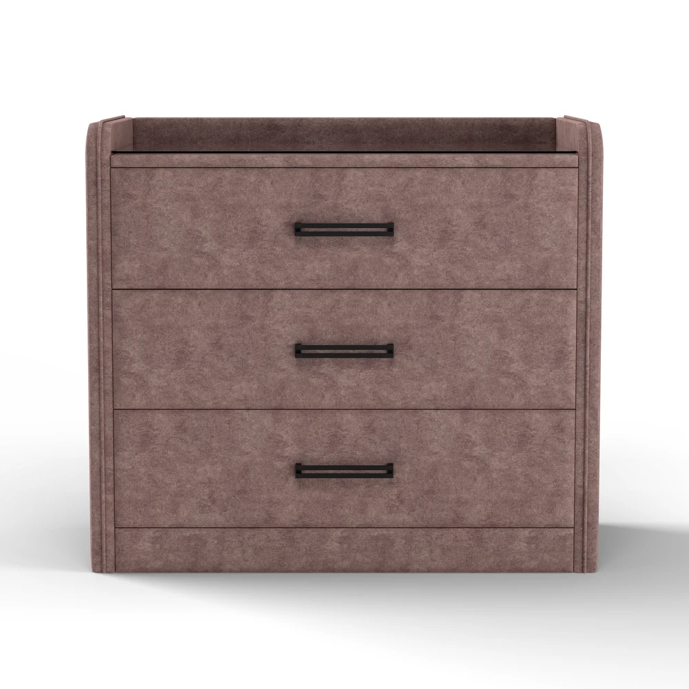 Comodă Tivoli - cu 3 sertare și blat din sticlă. Rigiditatea clasică a liniilor și marginea decorativă din jurul perimetrului, colțurile rotunjite și tapițeria de calitate adaugă eleganță acestei comode.