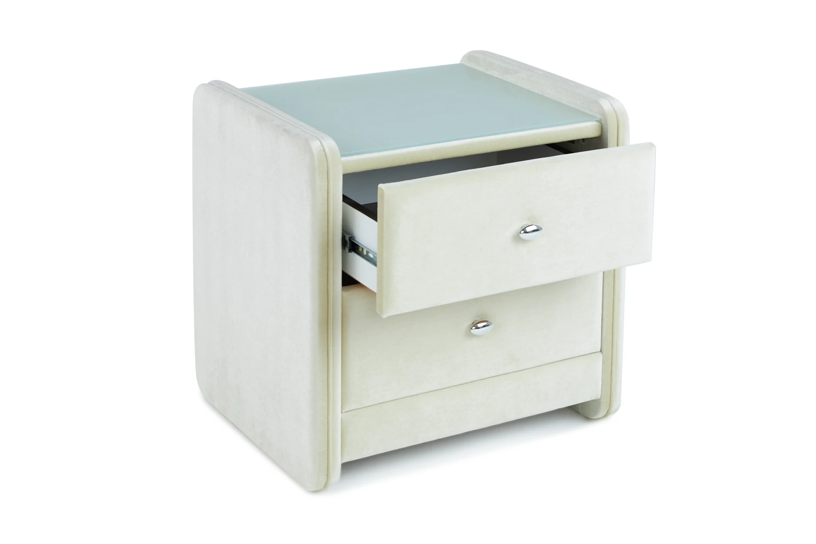 Noptiera poate fi realizata din doua stofe: corpul poate fi realizat dintr-o singura nuanta, fata cutiei - o nuanta si din stofe cu model;