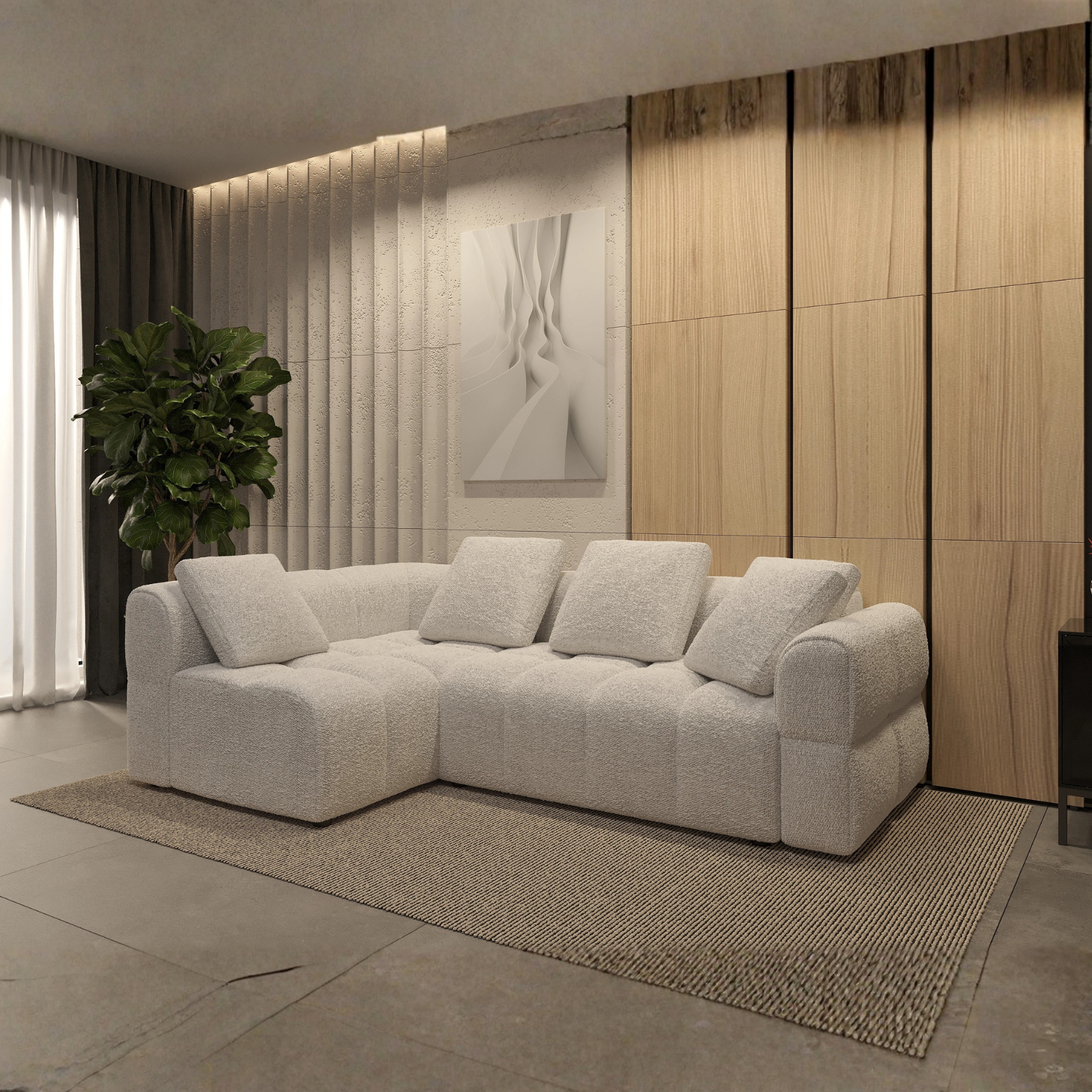 Transformă-ți livingul într-un spațiu elegant și primitor cu Colțar extensibil Norman. Cu un design modern, linii curate și detalii minimaliste, aceast colț adaugă un plus de rafinament oricărui decor interior. Sezutul generos, moale și confortabil este ideal pentru momentele de relaxare zilnică, oferind susținere optimă și un plus de confort datorită materialelor de calitate superioară.