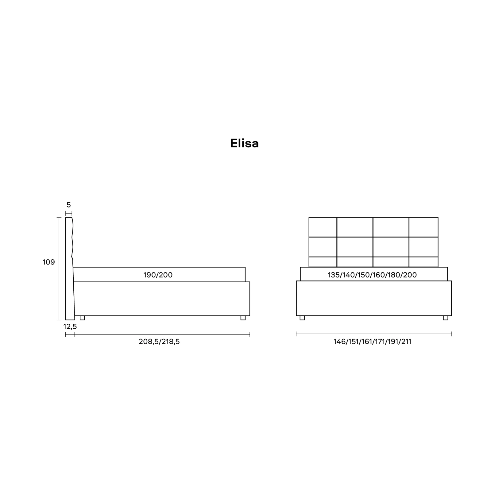 Întinderea dreptunghiulară a tăbliei adaugă volum patului, în timp ce cusăturile și pliurile adaugă volum. Perimetrul moale și colțurile rotunjite fac patul Elișa sigur chiar și pentru copii.