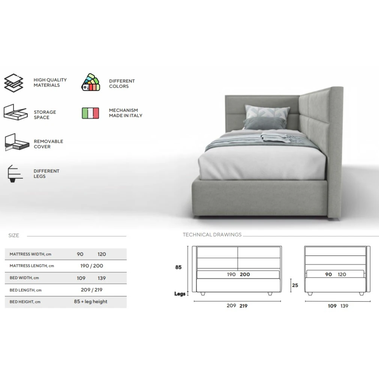 Lungime 190/200 - Adâncimea utilă a spațiului de depozitare: 15 cm;