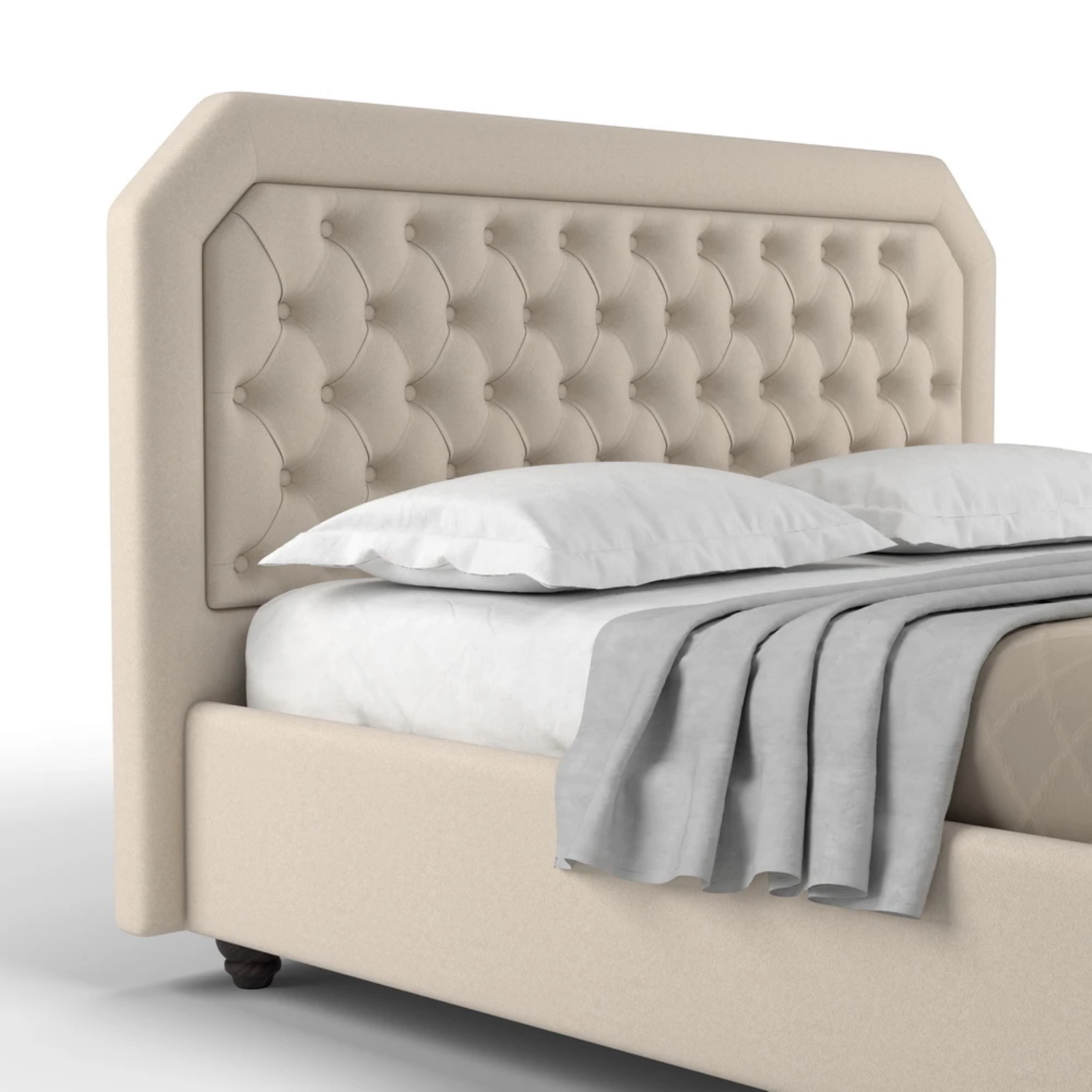 - Patul vine cu picioare standard Chrome de 5/8/10 cm (cilindrice din metal argintiu). Alte optiuni sunt contra cost.