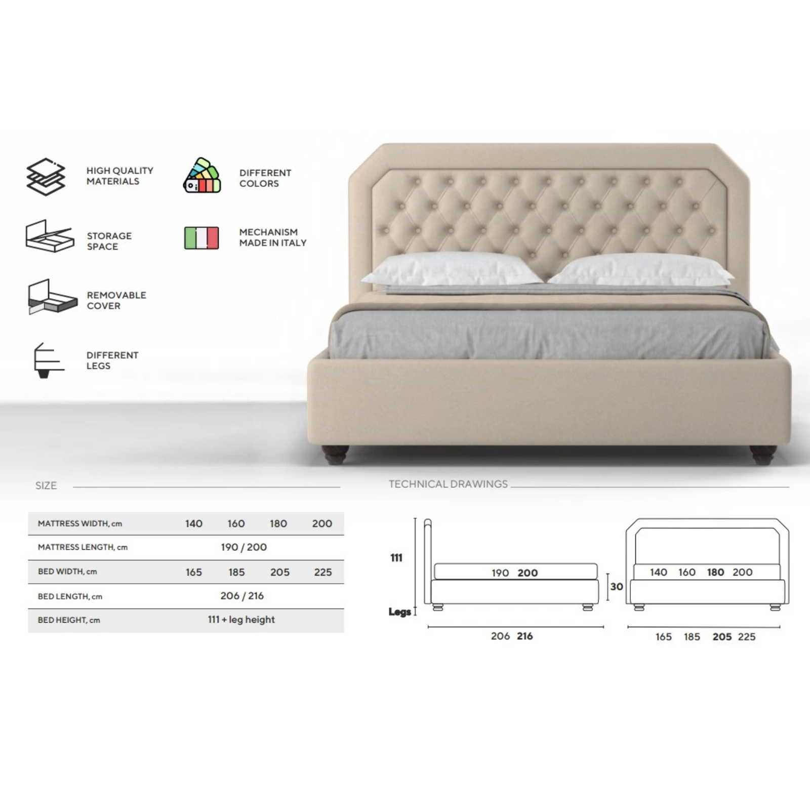 Lungime 190/200 - Adâncimea utilă a spațiului de depozitare: 15 cm
