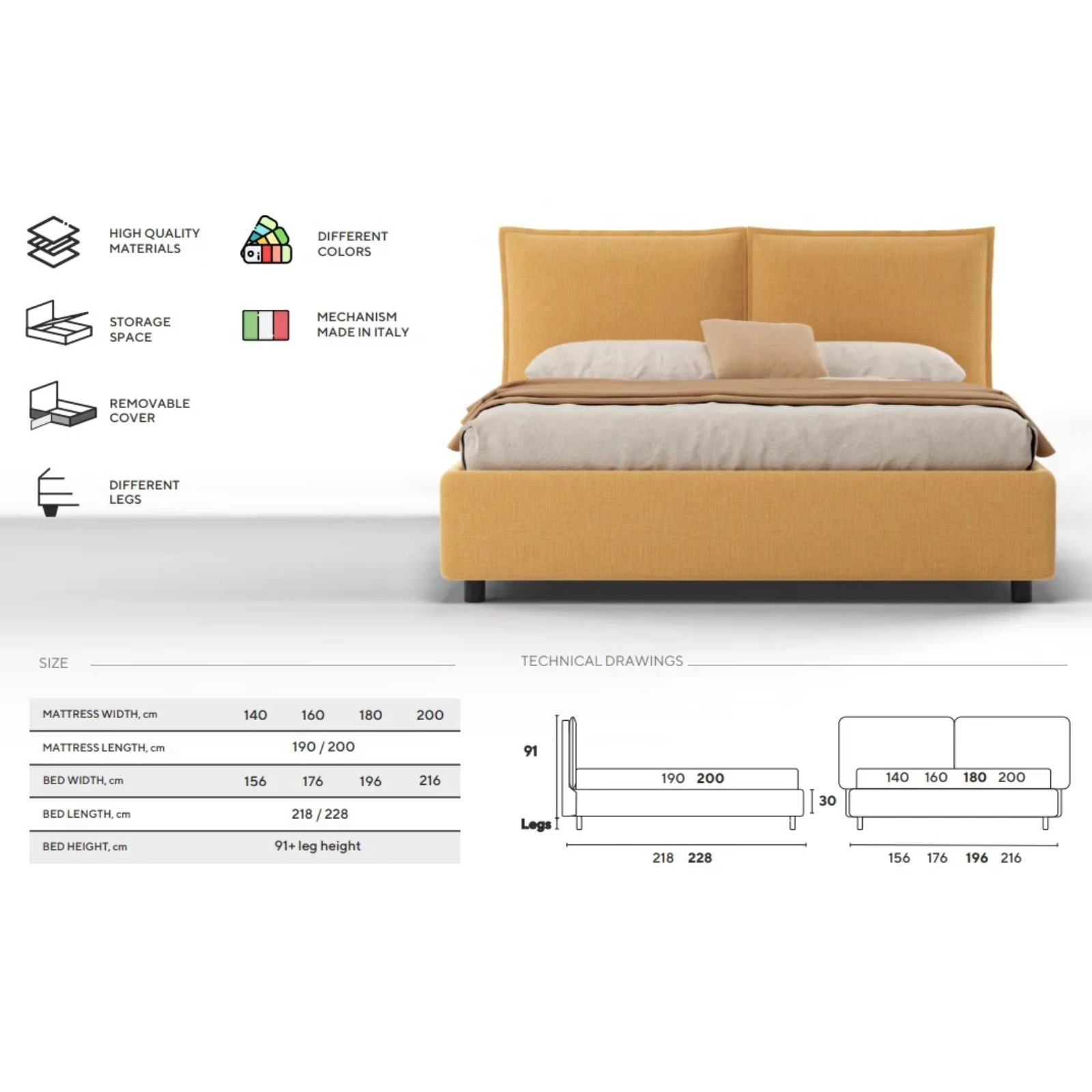 Patul Savanna se remarcă prin tăblia sa cu două perne detașabile, care oferă confort și suport suplimentar. Pernele au huse detașabile, ușor de întreținut, și completează designul modern al patului, făcându-l atât practic, cât și elegant pentru orice dormitor.
