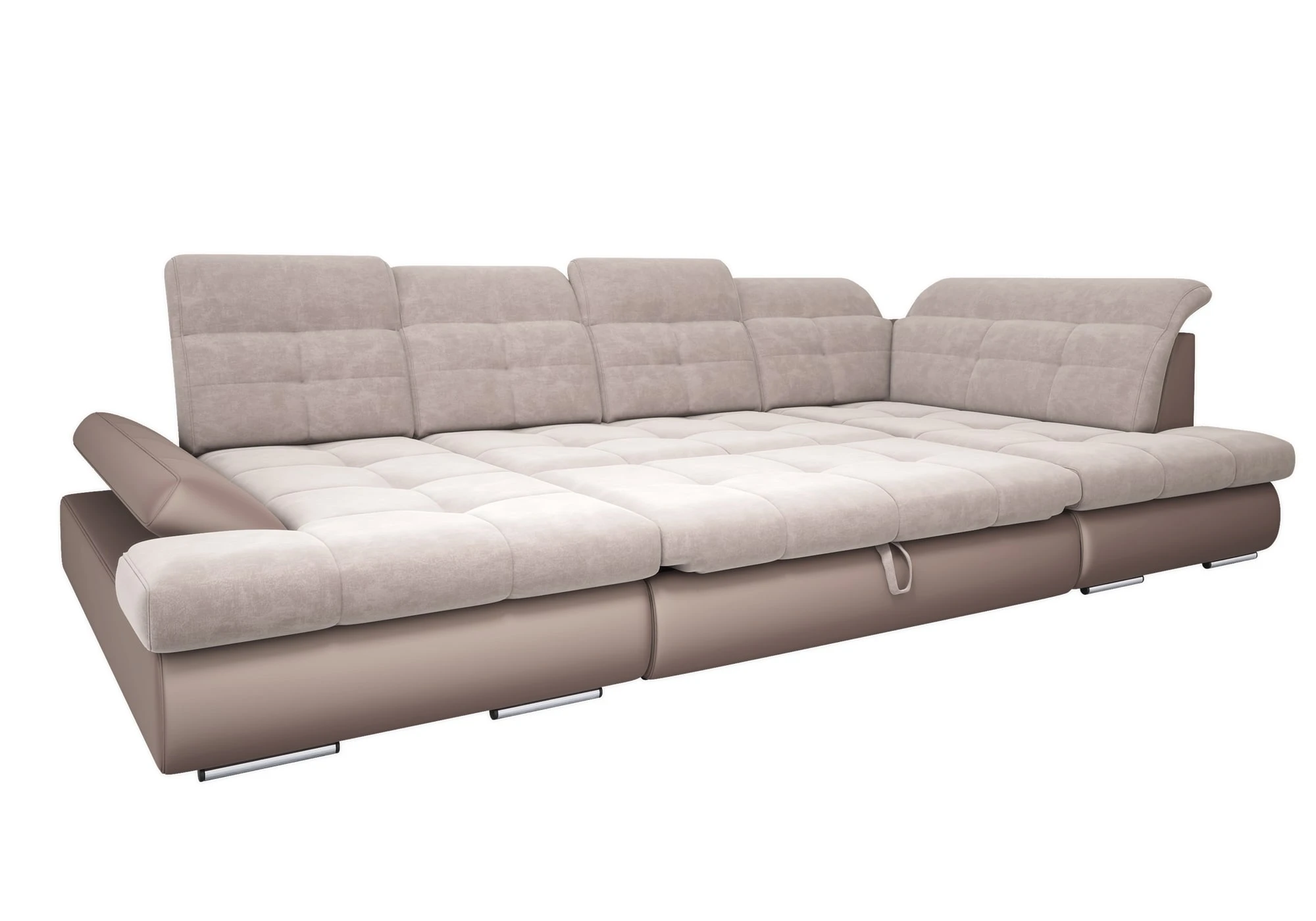 Colțarul extensibil Roxi 2 are un design modern și funcțional. Este ușor de transformat în pat, dispune de un spațiu de depozitare generos și tetiere reglabile pentru confort sporit.