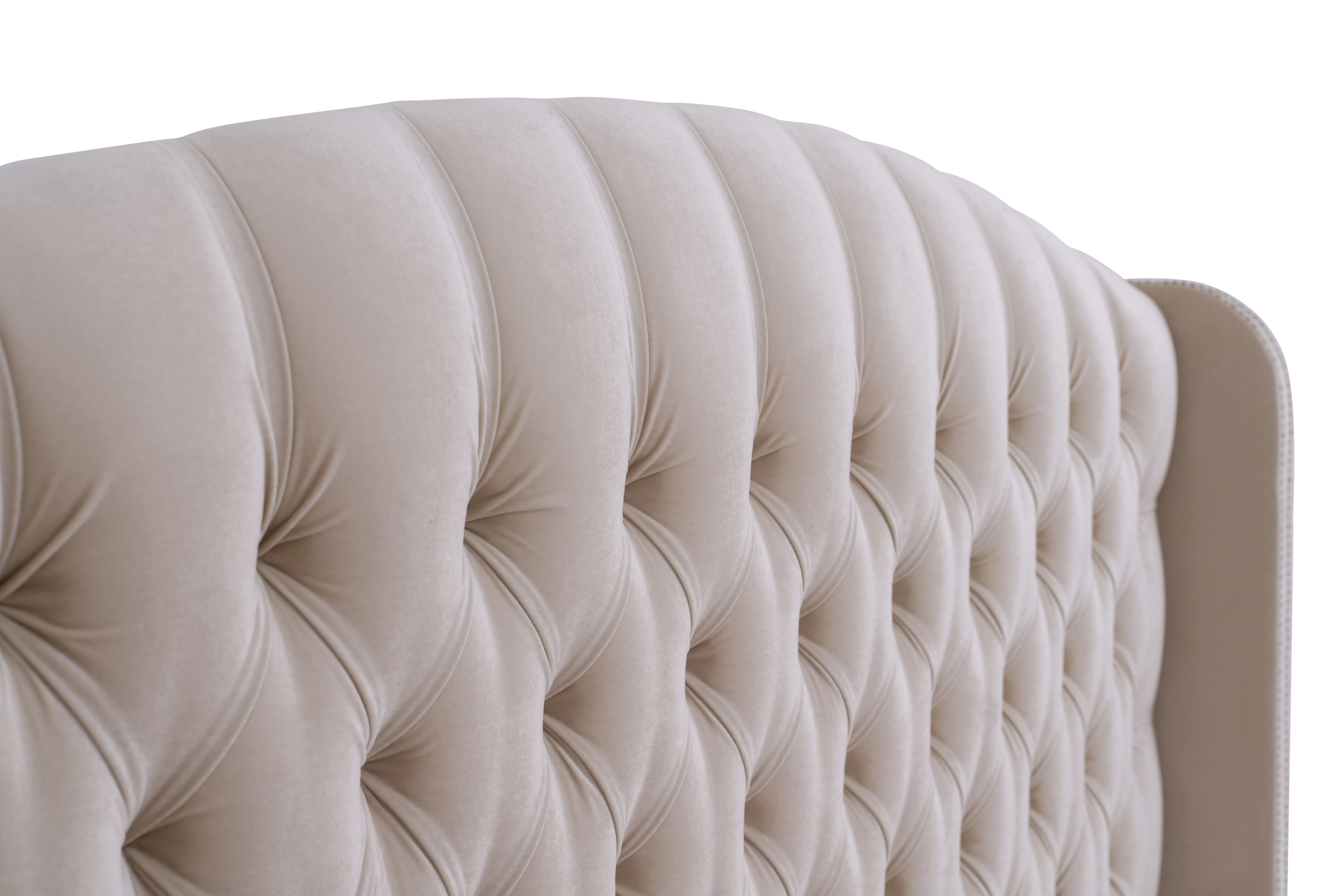 Simplitatea, eleganța și confortul au fost îmbinate în patul Rachel. Tăblia înaltă și moale creează o senzație specială de calm și siguranță pe tot parcursul somnului.