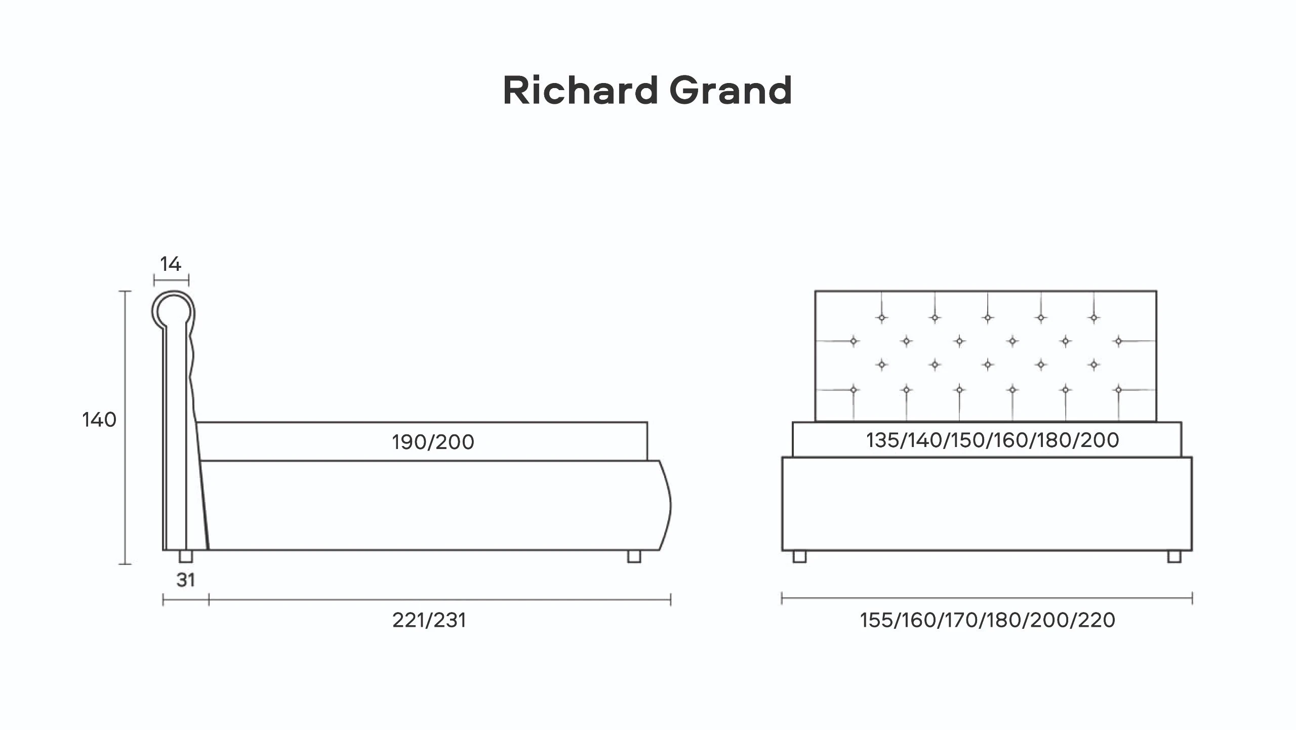Patul Richard Grand combina in designul sau eleganța si rigoarea. Tablia înalta (cu 30 cm mai mult decat in cazul patului Richard) atrage atentia prin simplitatea si claritatea liniilor cu aspect aristocratic. Acest pat va arăta ideal în orice tip de interior, atât ​​clasic cât și în modern.