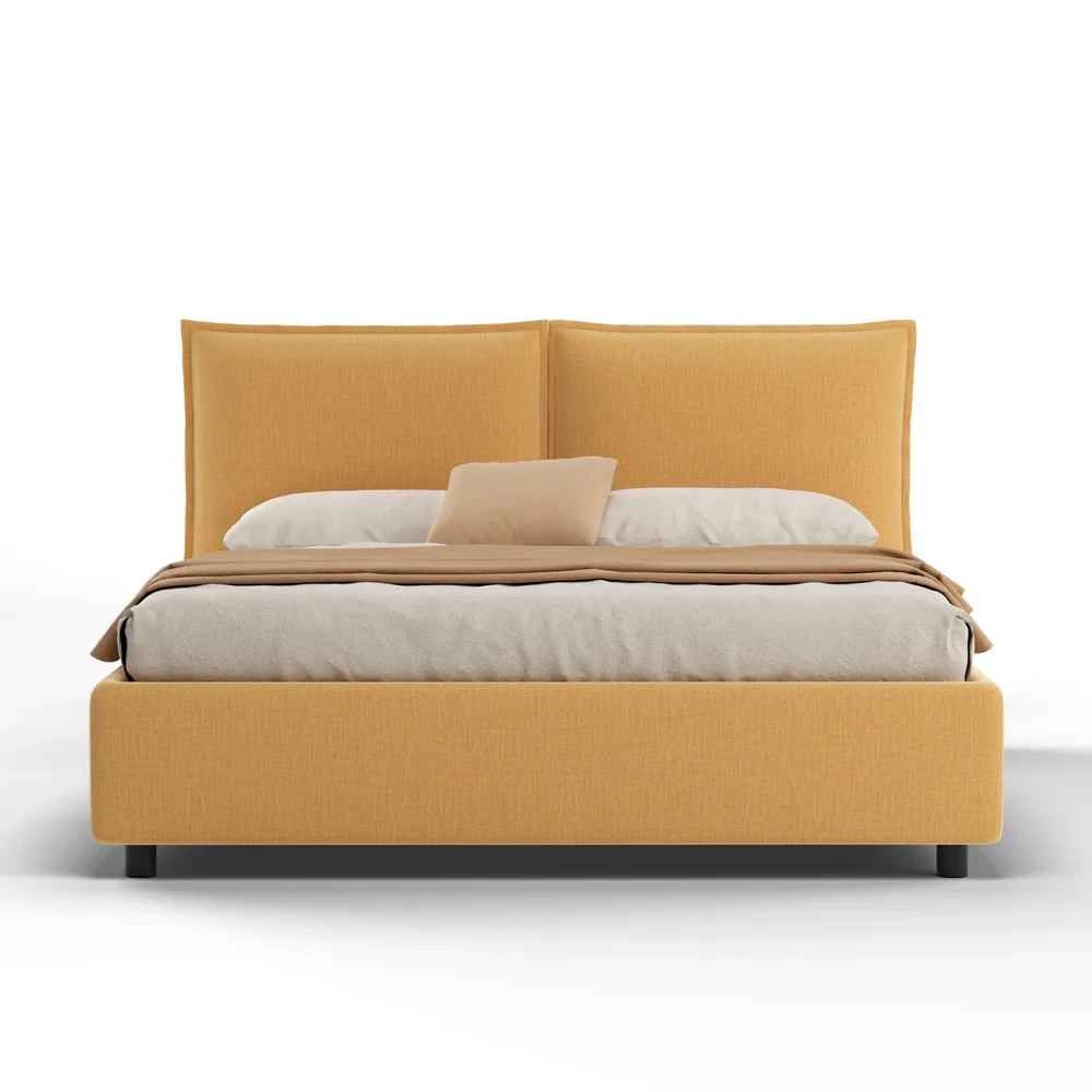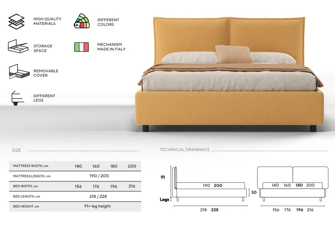 Patul Savanna se remarcă prin tăblia sa cu două perne detasabile, care oferă confort și suport suplimentar. Pernele au huse detasabile, ușor de întreținut, și completează designul modern al patului, făcându-l atât practic, cât și elegant pentru orice dormitor.