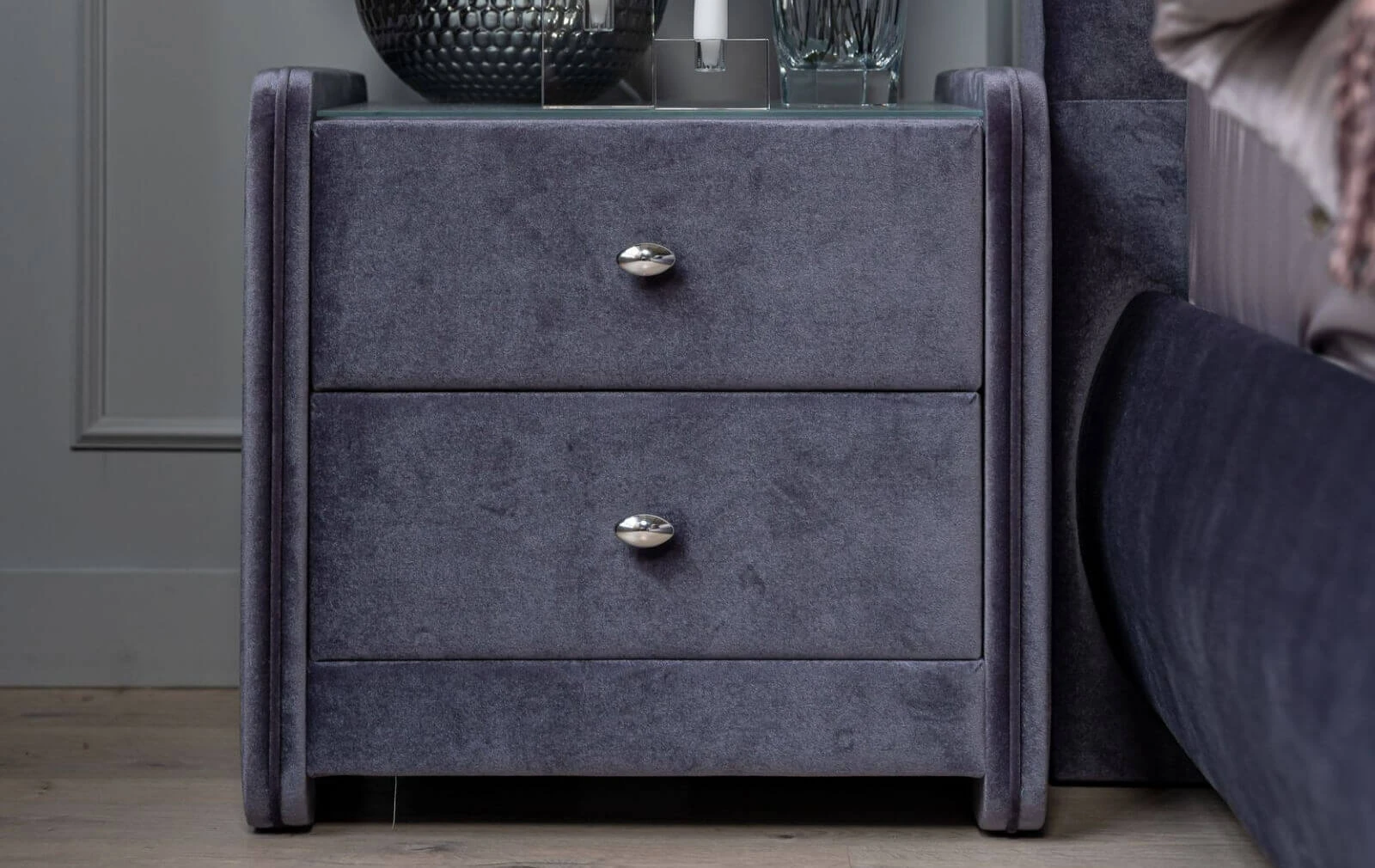 Noptiera poate fi realizata din doua stofe: corpul poate fi realizat dintr-o singura nuanta, fata cutiei - o nuanta si din stofe cu model;