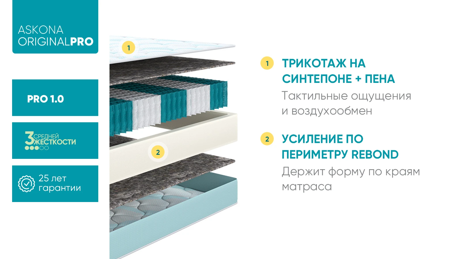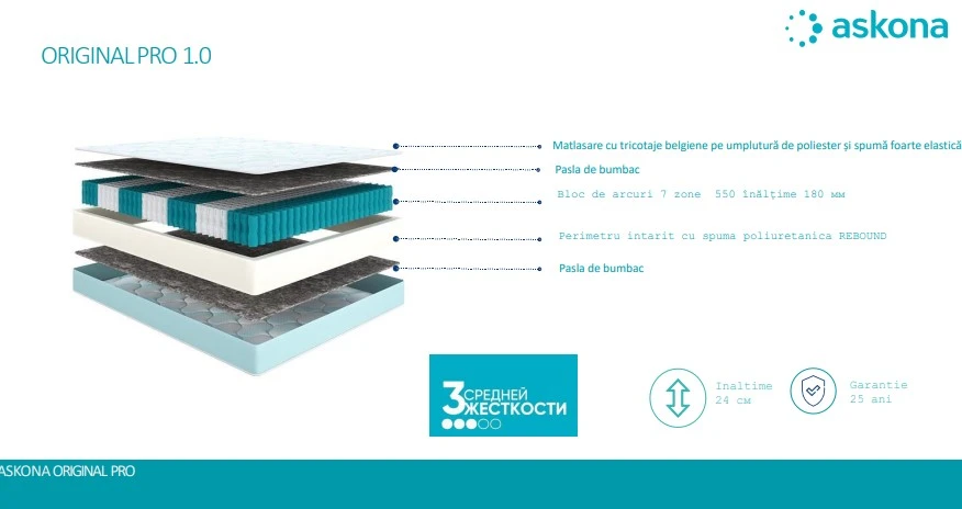 Askona Original Pro este o colecție de saltele inovatoare la prețuri accesibile pentru persoanele cărora cea mai recentă tehnologie a devenit de multă vreme parte integrantă a vieții.