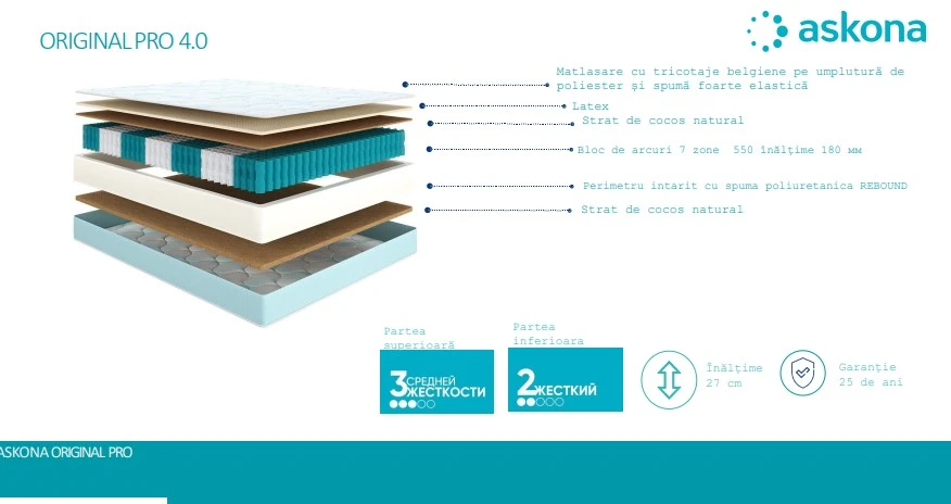 Askona Original Pro este o colecție de saltele inovatoare la prețuri accesibile pentru persoanele cărora cea mai recentă tehnologie a devenit de multă vreme parte integrantă a vieții.