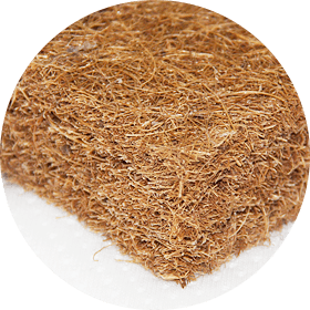 - Stratul din fibră de cocos, cu inserție de latex, adaugă elasticitate și rezistență, îmbunătățește proprietățile anatomice ale saltelei;