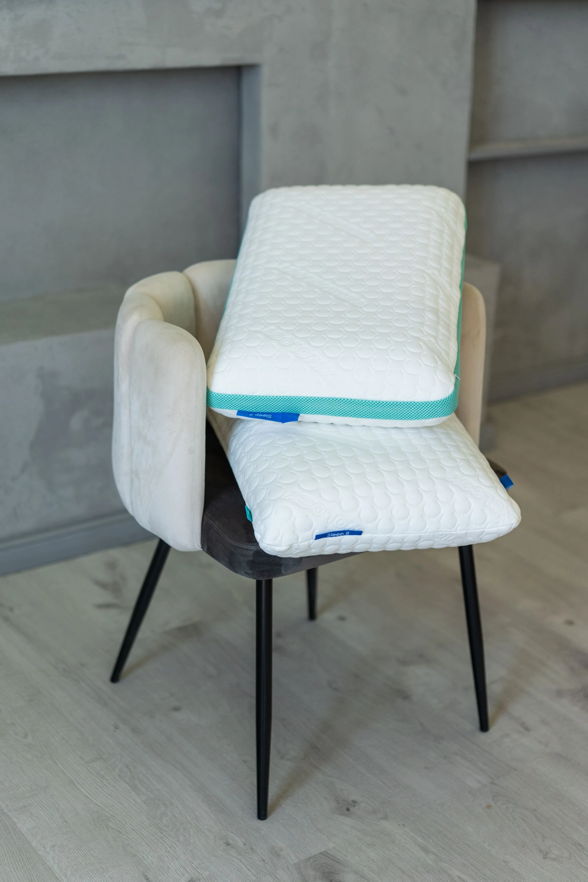Perna anatomica din spumă Neo Taktile. Se conformează perfect formei capului și menține gâtul în poziția corectă în timpul somnului. Are efect de termoreglare, permeabilitate la aer și răcire.